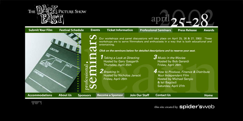 The BEPS approached DblYolks in their effors to build a event site for the film festival which included general event information, a interactive schedule of films, workshops and award ceremonies. The site required a full content management system to allow staff to keep the site current throughout the film submission and review process as well as the event showings and awards.