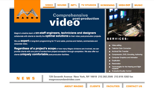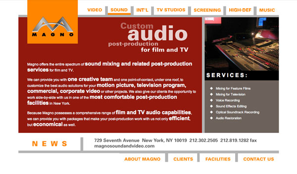 We put the East coat's premier audio/video production house online.