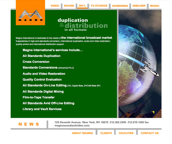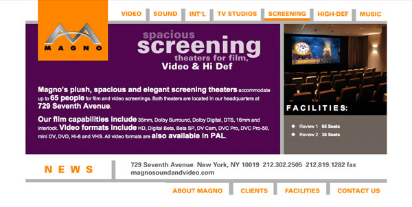 Magno is an industry powerhouse that ranks as the East Coast's largest and most comprehensive post-production facility. For more than 50 years, Magno provides an ever-growing range of diverse services for film and TV from their Times Square headquarters.