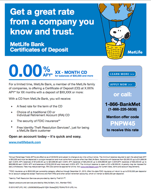 Scope: MetLife Bank approached DblYolks to manage the process of developing various landing pages to support a desposit/savings promotional marketing campaign. The goal was to develop a series of landing pages pages that were meant to educate the consumer, create brand awareness, and ultimately acquire new customers while meeting allowables.