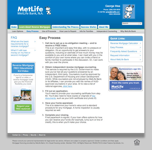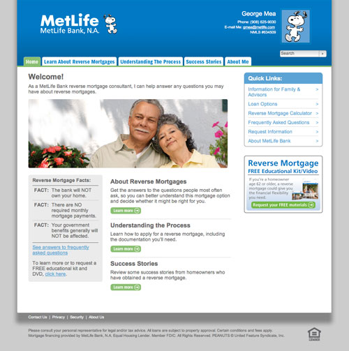 Scope: The primary objective was to create a complete customizable redesign for the 1,200+ traditional loan officers and 500 reverse mortgage consultants. It was our focus to create a user experience that was not only intuitive, but one that also allowed for the consumer to efficiently retrieve and digest content that was crucial in the loan origination process. The combination of interactive design & informational architecture was at the forefront of our approach, and the conversion flow needed to be considered at every touch point.